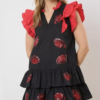 ZCcd2407097 Venta al por mayor Ropa del día del juego Lentejuelas con volantes escalonados Estrella Gameday Fan Mini vestido Fútbol Béisbol Lentejuelas Vestidos de mujer